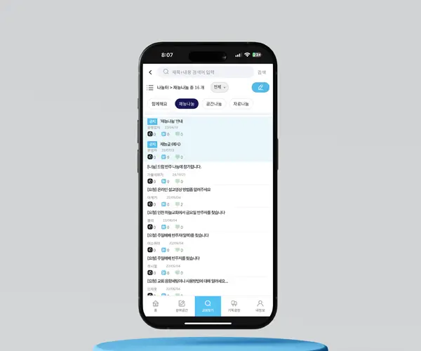 어플리케이션 하나로, 교회와 성도 사이의 거리감이 사라집니다. 공지, 예배 알림, 기도 요청까지 - 이제 단순한 전달을 넘어 숨 쉬듯 이어지는 신앙의 교제를 경험하세요.
