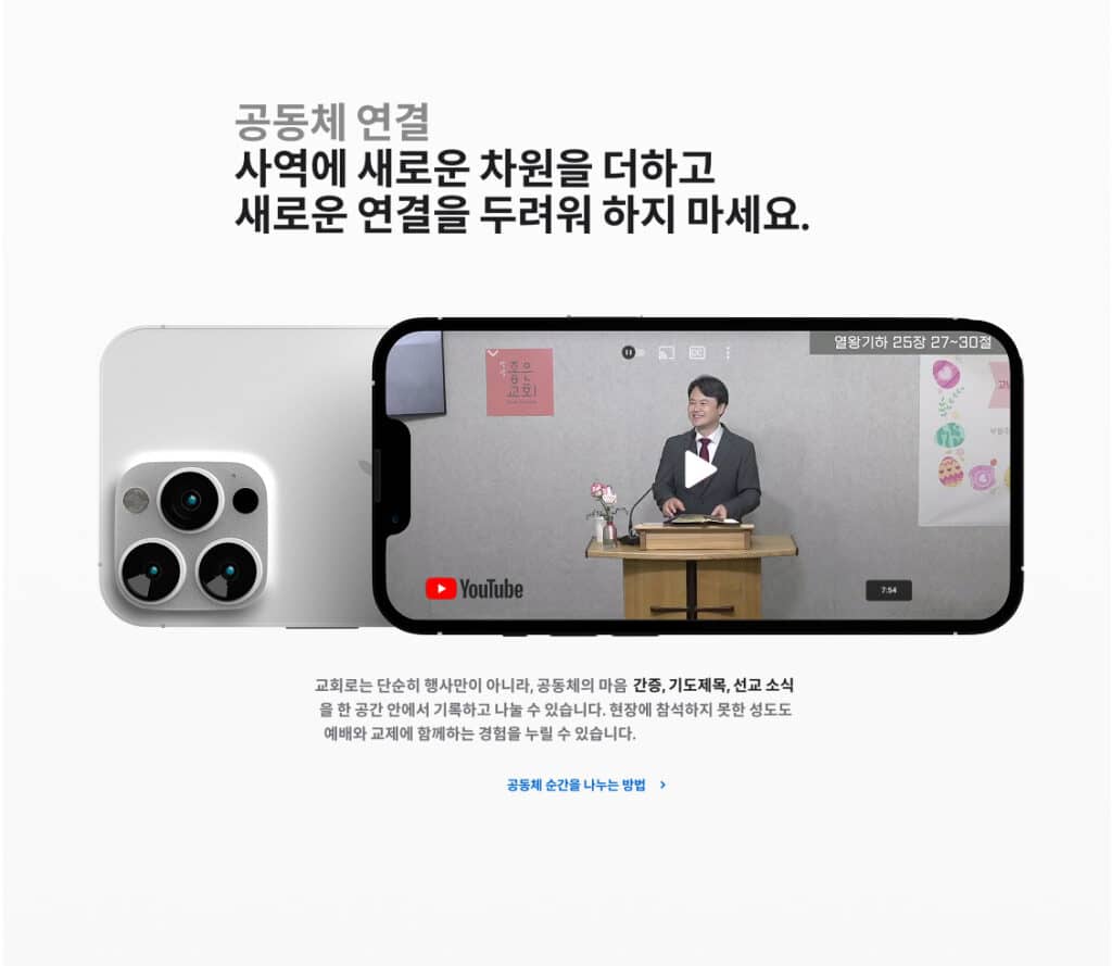 홈페이지를 대신 할 수 있는 교회를 위한 간편한 온라인 소개 페이지입니다.